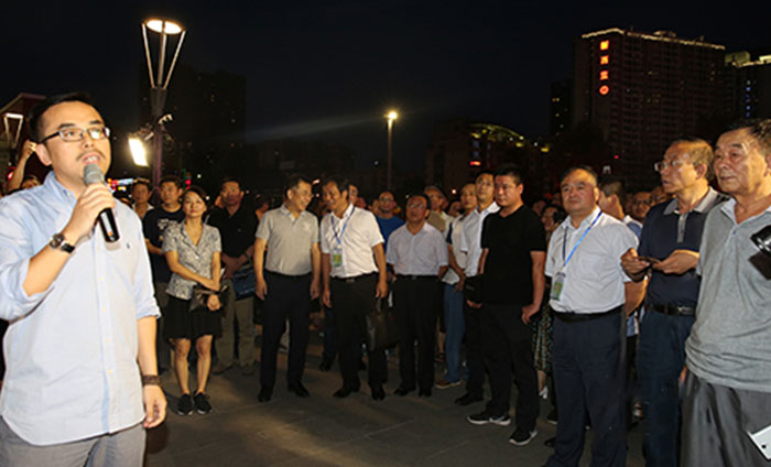 首先考察組一行來到唐城墻遺址公園北廣場(chǎng),高新區(qū)夜景照明及唐遺址公園燈光秀的總設(shè)計(jì)師、北京信達(dá)電通科技董事長(zhǎng)王春龍先生給眾領(lǐng)導(dǎo)講解由信達(dá)電通設(shè)計(jì)策劃的高新區(qū)夜景亮化提升方案。