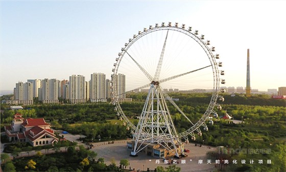 “丹東之眼”是中朝邊境一道亮麗的風景線,信達電通在設計中采用絢麗的燈光和濃重的色彩。設計師通過燈光的動態變化、光色的轉換,創造出一個歡樂、覽勝的燈光樂園。當夜晚降臨,彩燈閃爍,摩天輪一圈圈地劃過點亮丹東最美天際線,顯現出其非凡的魅力!