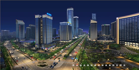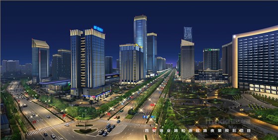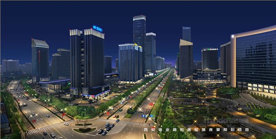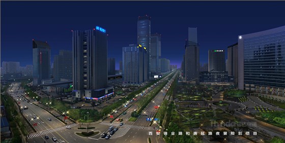 本項為西安高新區建筑景觀照明規劃設計中的一部分,地處于唐延路南與錦業路東交叉口,該視角可見建筑有都市之門、浦發銀行、綠地智海大廈、綠地筆克國際會展中心、陜西煤業化工集團、領海大廈、中鐵航空港假日酒店等,是高新區錦業路南端的重要位置,當車輛、行人抵達該位置時,視角寬闊夜晚可視范圍大,夜幕下的燈光也就更為重要。