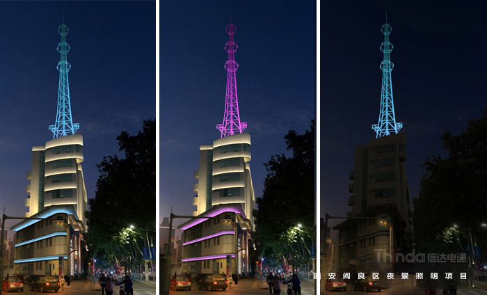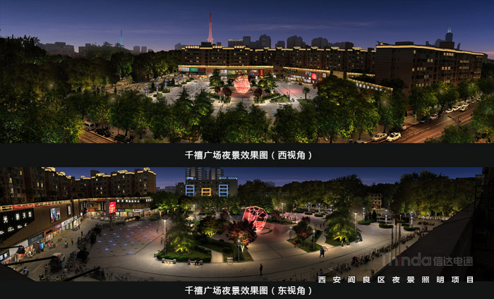 閻良區亮化示范街部分樓宇、景觀亮化設計效果圖與亮化實施后的實景賞析: