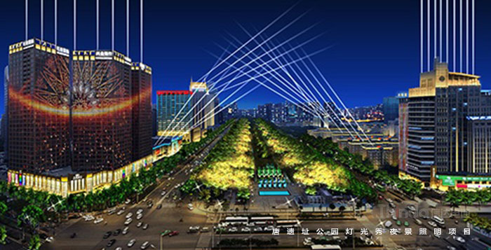西安高新區北廣場區域為燈光秀的重要核心,往南后逐漸弱化,直至延平門廣場后落幕,同時兩側高層建筑頂部燈光顏色變化與整場燈光秀節奏相呼應。項目位于西安市高新區核心區域,由科技路、唐延路、科技一路、灃惠南路相環繞而成,結合西安地域文化特色,以文化為內涵,讓傳統文化與現代信息交互向榮,將廣場簡稱一個高起點的、具有時代氣息的、娛樂休閑賞景相結合的文化中心場所,配合兩側建筑照明,充分展示西安的城市新形象。