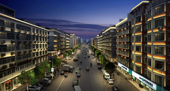 三級建筑照明:以沿街道路低矮居住類建筑為主,定義為三級照明等級,主要表現(xiàn)建筑頂部及立面重要結(jié)構(gòu)光。