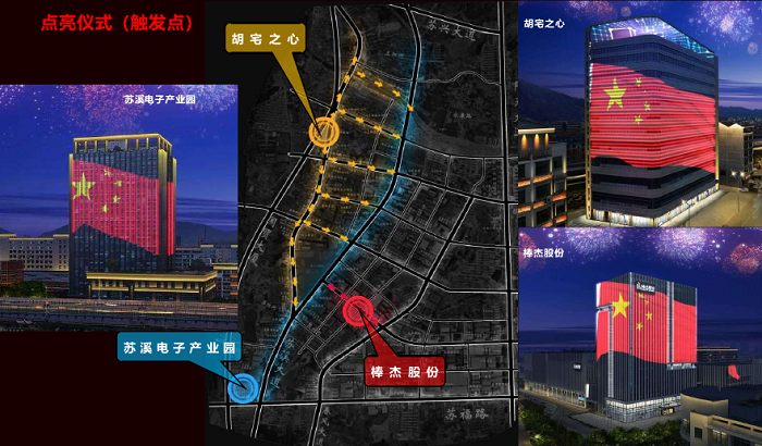 信達電通為蘇溪鎮(zhèn)量身打造以“夢回蘇溪·光明之都”為主題的充滿藝術(shù)性、統(tǒng)一性和智能化的城市夜景,并為其提供規(guī)劃設(shè)計、實施和智能控制系統(tǒng)搭建等全過程服務(wù)。項目范圍包括大陳江景觀帶一期、興蘇路、鎮(zhèn)前街、人民路、蘇華街、蘇溪大道鎮(zhèn)前街廣場等。